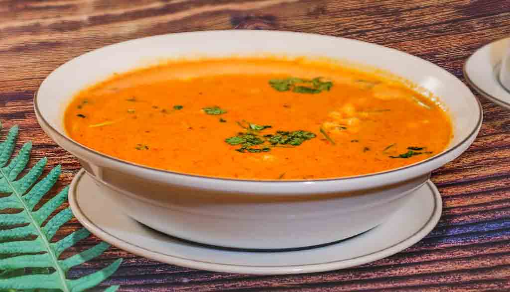 Sliced chicken, prawn,and mushroom cooked with low fat milk,Thai herbs & spicy sauce