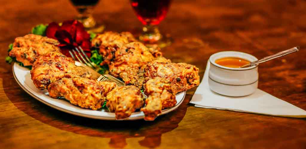 Sliced chicken & prawn cooked with mushroom, fried onion and chili tom...