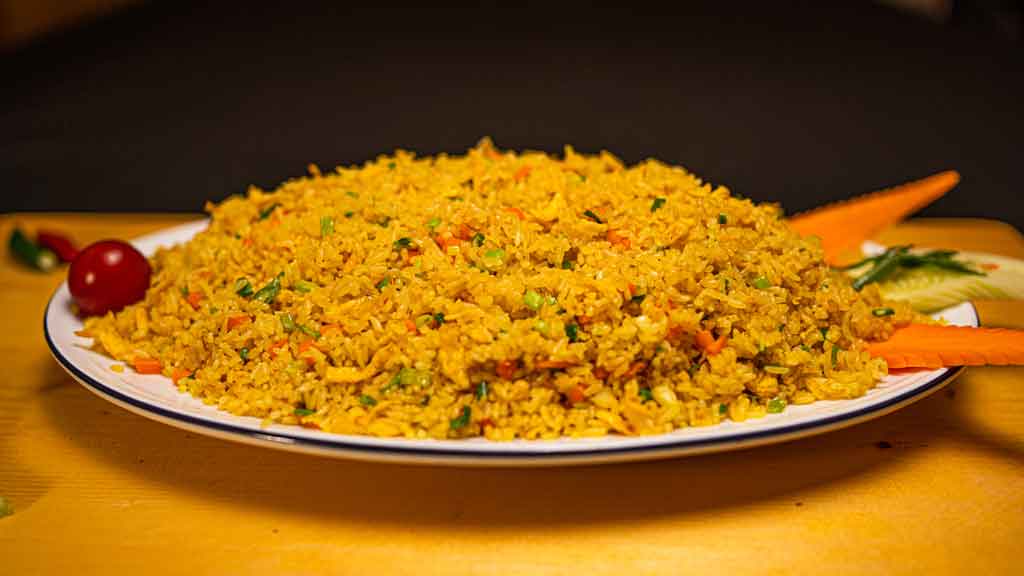 Aromatic rice prepared with sliced chicken, egg, vegetable & spices